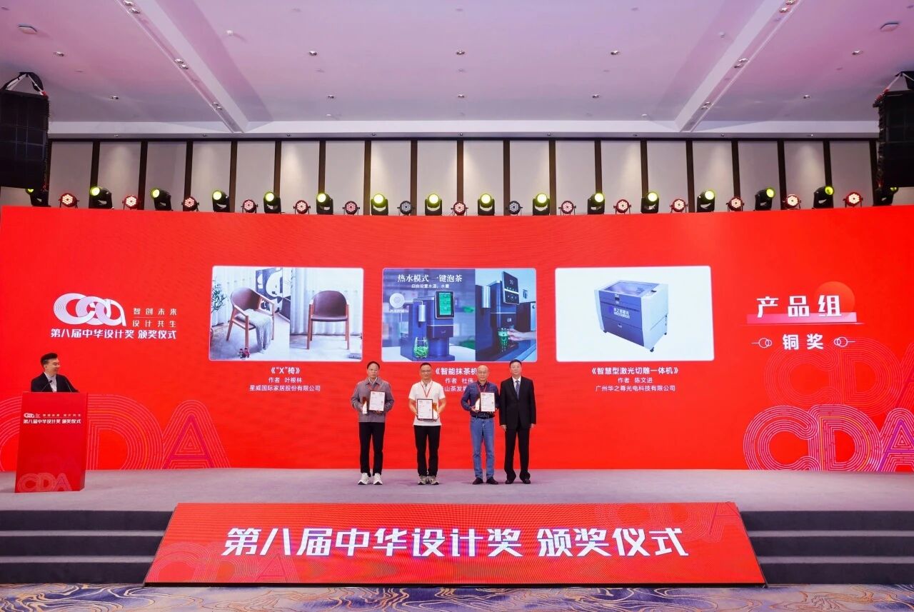 2025年11月12日,第八屆中華設計獎頒獎盛典在浙江?寧波?鎮海隆重舉行。在這場代表中國設計界最高水準的賽事中,廣州華之尊光電科技有限公司研發生產的智慧型激光切雕一體機HZZ-V3000憑借卓越的創新設計和領先的技術性能,從眾多參賽作品中脫穎而出,成功斬獲產品組銅獎。展會現場,全國人大常委會副委員長陳昌智親臨華之尊展區指導,在詳細了解產品性能后,連聲稱贊:"很棒!"